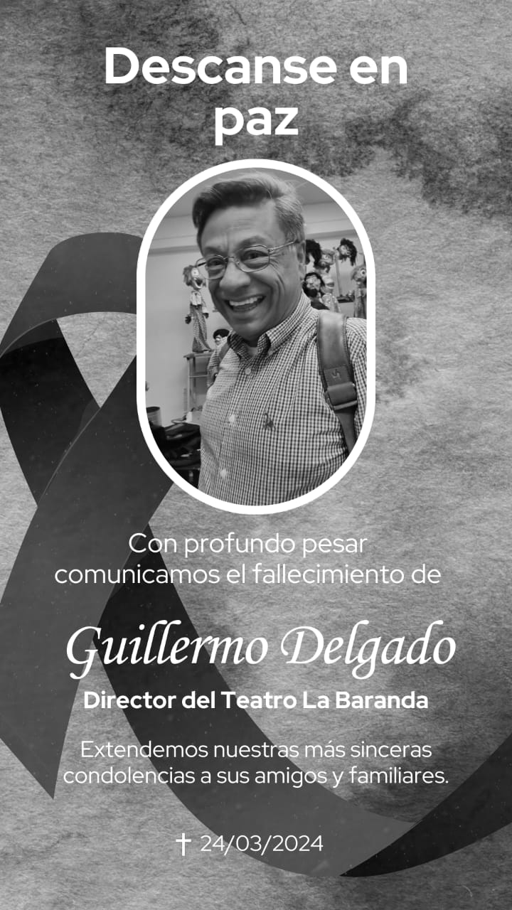 Desde la red de teatro de Soacha, la red de salas de teatro independientes de Cundinamarca, expresamos nuestra solidaridad a la familia del teatro la Baranda de la Calera por la partida de su director y representante departamental de teatro Guillermo Delgado. Quien trabajo en pro del crecimiento de las artes escénicas. Nuestra gratitud por su labor y un abrazo fraternal a su familia por esta dolorosa perdida. Este miércoles 27 de marzo nos uniremos en un mensaje de recuerdo y amistad en la conmemoración del día internacional del teatro.