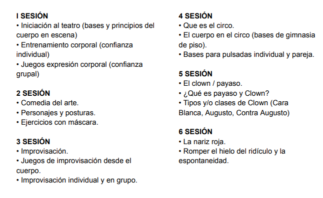 Está dirigido a personas que deseen incurrir o que ya tengan experiencia en el clown/payaso o cualquier arte escénico, abierto para grupos de teatro, músicos, bailarines, etc… cualquier persona que quiera descubrir, despertar su payaso. Quienes estén interesados pueden inscribirse en el siguiente formulario: https://forms.gle/jaKPhiDNsn61QYT69
