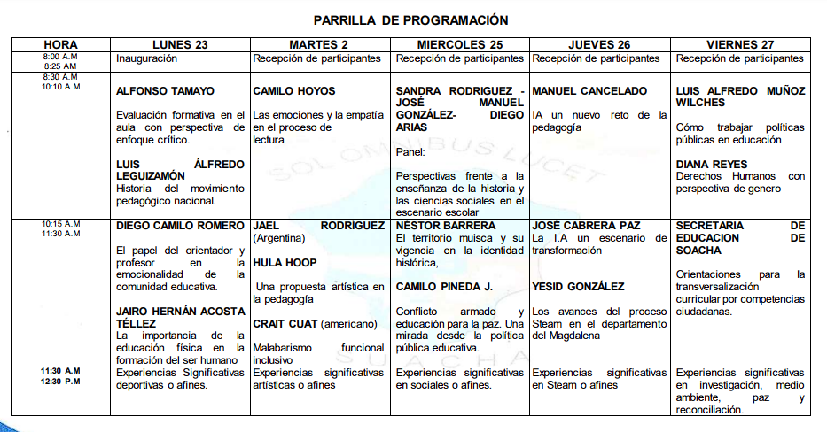 A continuación se presenta el cronograma de esta semana educativa en Suacha.